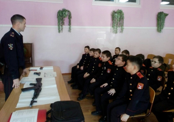 Также кадетам показали учебное оружие, состоящее на вооружении полиции, рассказали об их тактико-технических характеристиках и показали, как осуществляется сборка разборка.