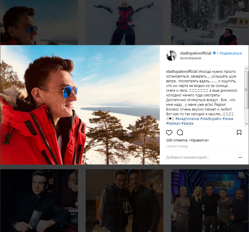 Совместные фотографии с Тодоренко экс-солист группы Smash опубликовал в своем микроблоге в Instagram. На снимке и коротком ролике Влад и Регина держатся за руки и вместе падают в сугроб. «Любите зиму?» – подписал публикацию исполнитель. Регина также выложила в соцсети фотографии с совместного отдыха.