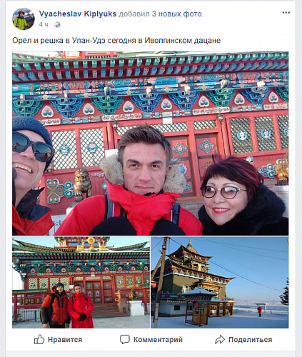 О визите съёмочной группы телепередачи «Орёл и Решка» в Улан-Удэ сообщил на своей странице известный путешественник Вячеслав Киплюкс. По его словам, 25-го февраля гости республики намерены посетить Тарбагатайский район.