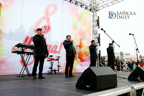 Сегодня на площади Советов в Улан-Удэ состоялся праздничный концерт «С 8 марта, любимые!», собравший несколько сотен зрителей. Праздничные номера женщинам подарили группа «Лэйкерс», Тимур Болотов, Михаил Пирогов, команда КВН «Хара Морин», Анатолий Арсаланов, вокальное трио «Тэмуджин», Алихан, шоу-группа «Отрада», ансамбль «Станица».