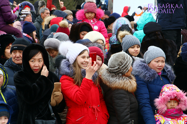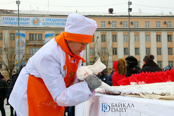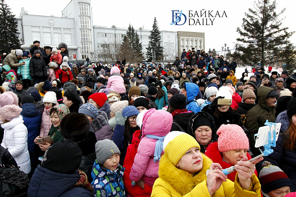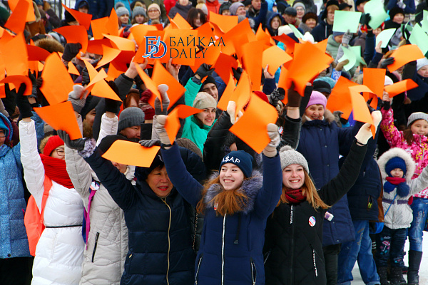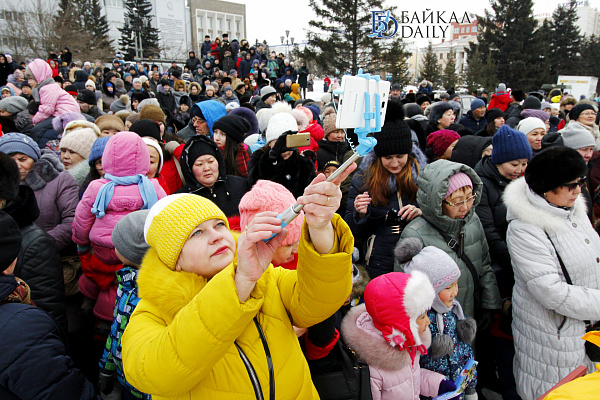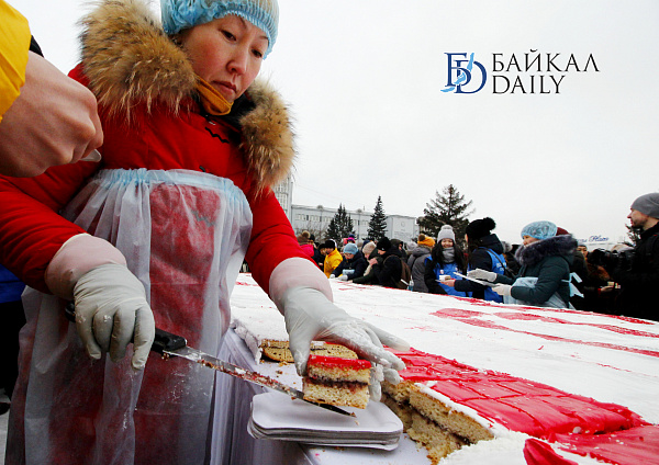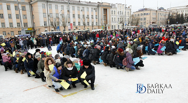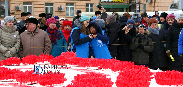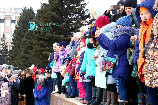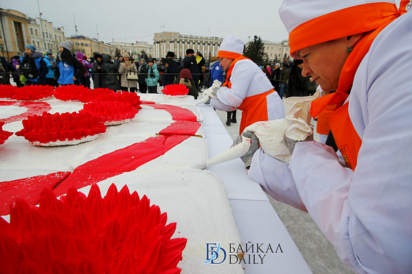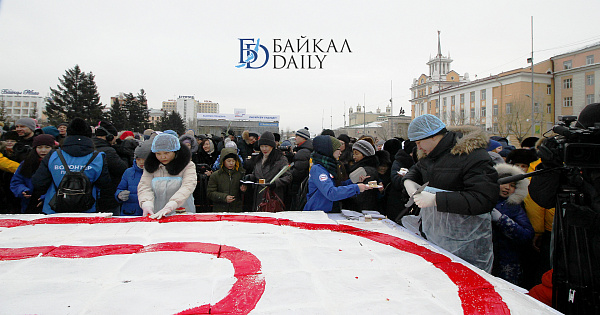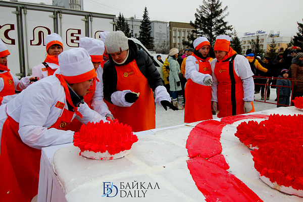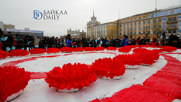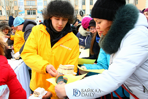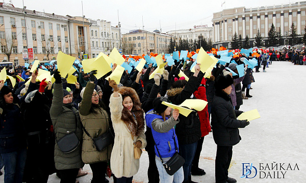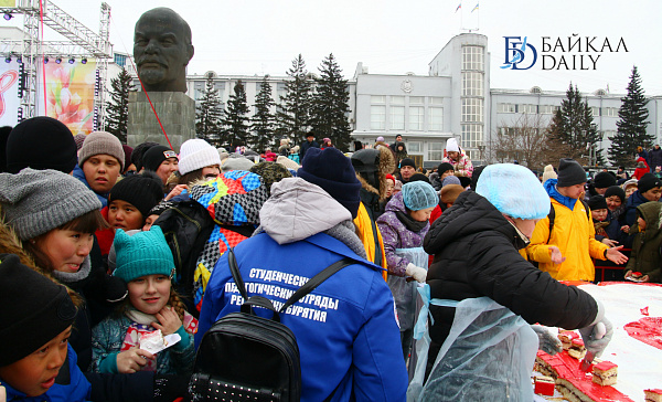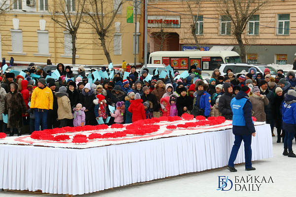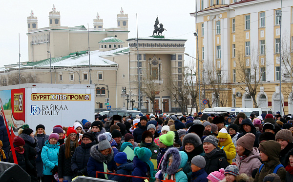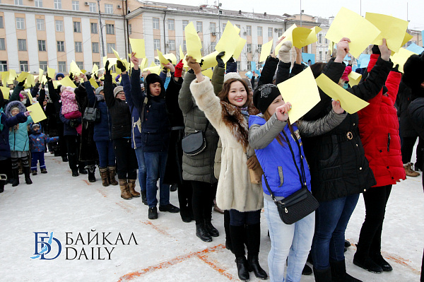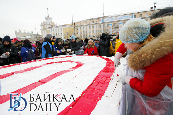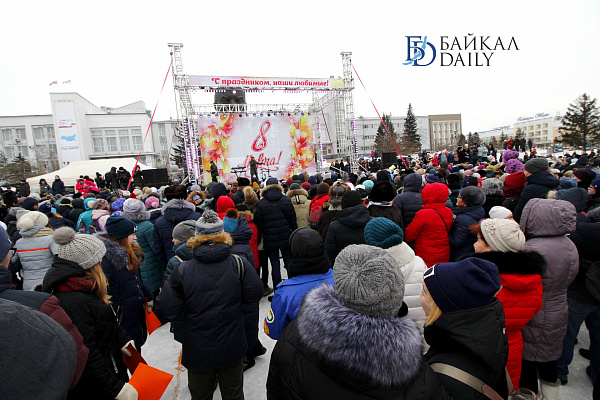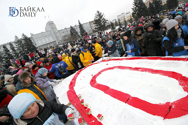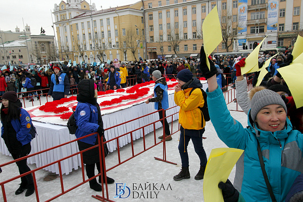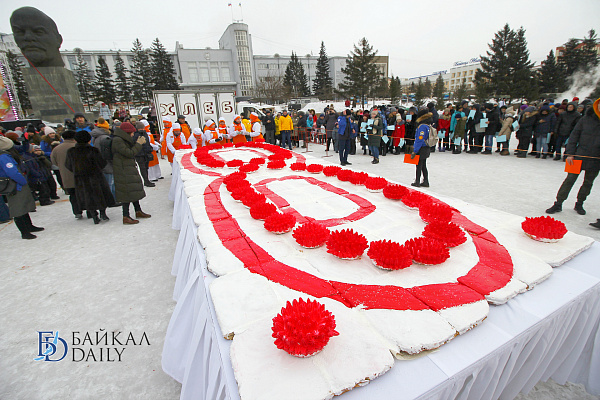 Состоялся на площади Советов красочный массовый флэшмоб – люди выстроились в гигантское поздравление «С 8 марта!» Праздничную надпись снимали с воздуха. Цифра «8» была обозначена мега-тортом от «Бурятхлебпрома».