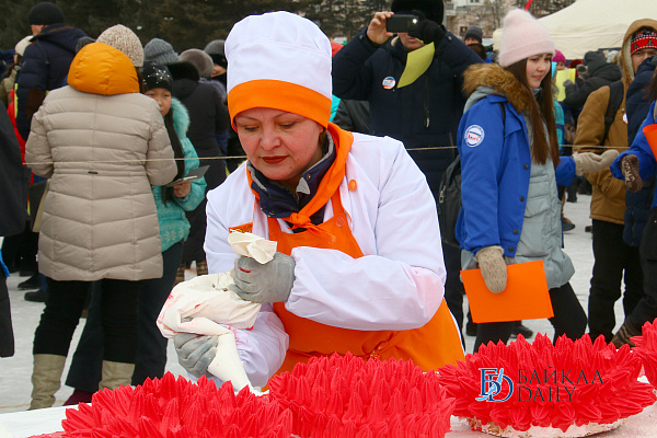 Торт из черёмухи получился 3 на 10 метров. На сегодня это самый большой торт, испечённый в России, так что скоро будет оформлена заявка для попадания в Книгу рекордов страны.