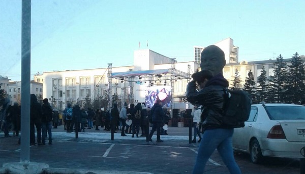 18.51. БD. На площади Советов в Улан-Удэ уже всё готово для митинга-концерта «Россия. Севастополь. Крым».