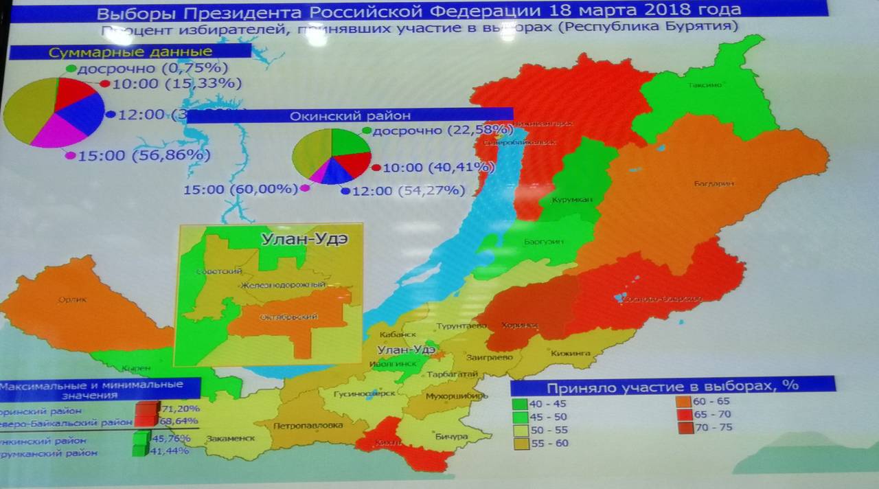 19.00. БD. На 18:00 в Бурятии проголосовало 67,4% избирателей. Это почти 408 тысяч человек.