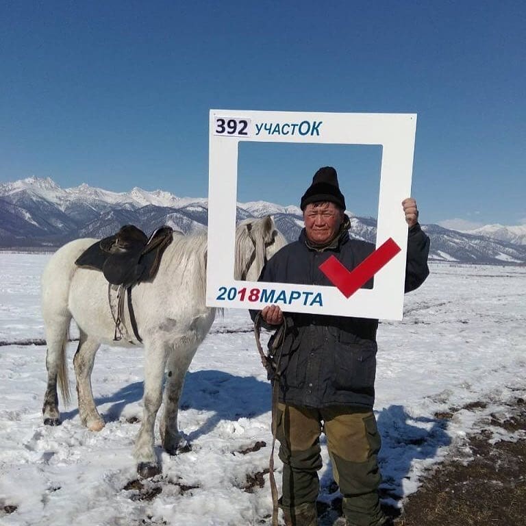 14.27. БD. Тем временем где-то в Курумканском районе избиратель приехал голосовать с дальней стоянки верхом на лошади.