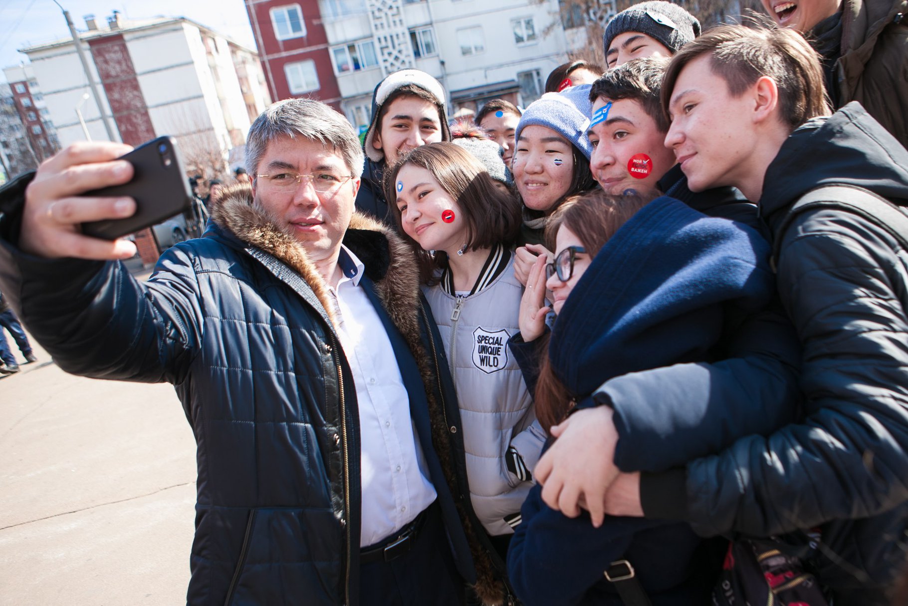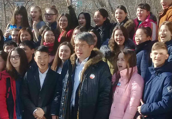 10.15. БD. После голосования на своём участке на Верхней Берёзовке Алексей Цыденов поехал в Бурятский республиканский педагогический колледж. Студенты приняли участие в проекте «Большой компанией на выборы». Компания, действительно, большая – 135 человек.