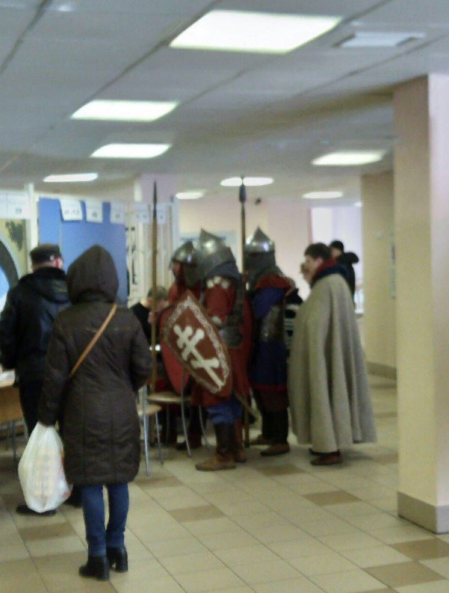 17.33. БD. На избирательный участок в Петербурге пришли голосовать рыцари.