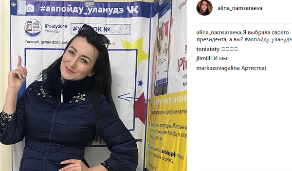 - Я выбрала своего президента, а вы? – написала певица и актриса Алина Намсараева.