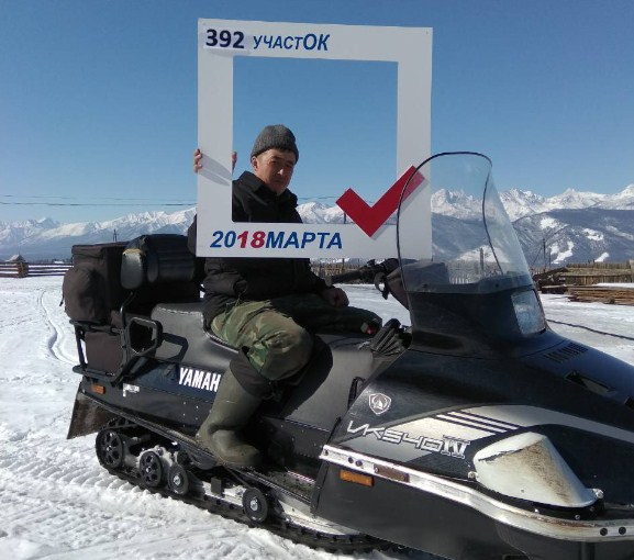 12.05. БD. Село Улюнхан Курумканского района. Местный житель на снегоходе приехал голосовать с дальней заимки.