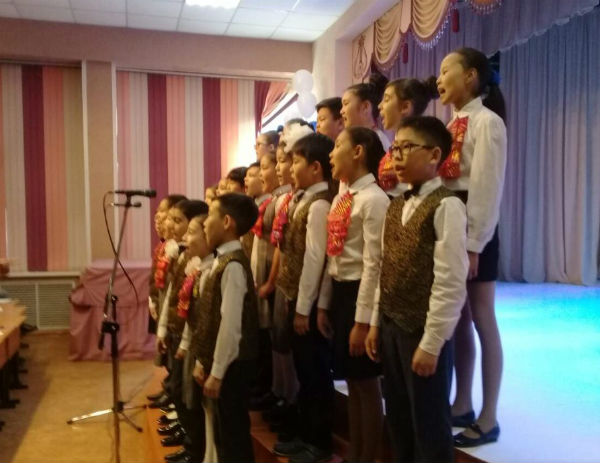 11.53. БD. Алексей Цыденов уже в школе №49. Здесь он, как и в 33-й гимназии, посмотрел небольшой концерт. Один из номеров – детский хор – глава снял на память на телефон.