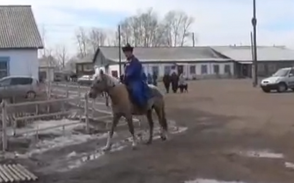 Прискакав к участку, наездник спешился и оставил животное снаружи участка. После голосования довольный избиратель воскликнул «Россия, Урагшаа!» (Россия, Вперёд!).