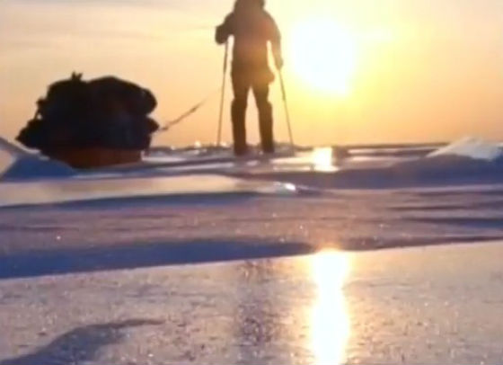 С собой у отважного туриста были лишь 80-килограммовые сани со снаряжением и продуктами. Ночевал он только на льду, в палатке.