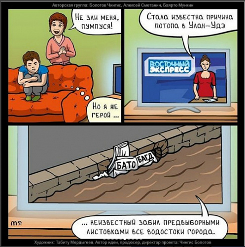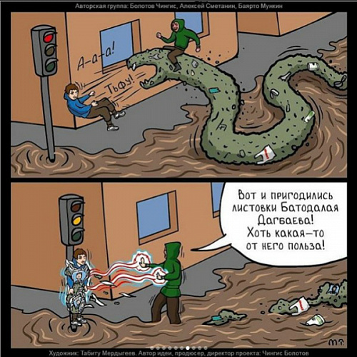 КВН-щики Бурятии продолжают сочинять комиксы про «СуперСамбу». В социальной появилась очередная серия. В ней юмористы описали недавние злободневные городские темы, такие как таяние снега и утопающий в лужах Улан-Удэ.