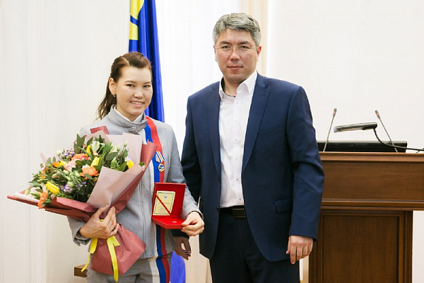 Вручая награду, Алексей Цыденов поздравил Алису с высокими спортивными достижениями и пожелал на следующей Олимпиаде взойти на пьедестал.