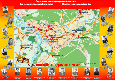 К 73-й годовщине Победы в Великой Отечественной войне в городе запускается необычный проект «Имена героев в названиях улиц». Управление по информационной политике Улан-Удэ совместно с музеем истории города, центральной городской библиотекой запускает цикл, посвящённый воинам – Героям СССР, участникам Великой Отечественной войны, чьими именами названы улицы Улан-Удэ. Идея проведения этого необычного проекта принадлежит мэру Александру Голкову.