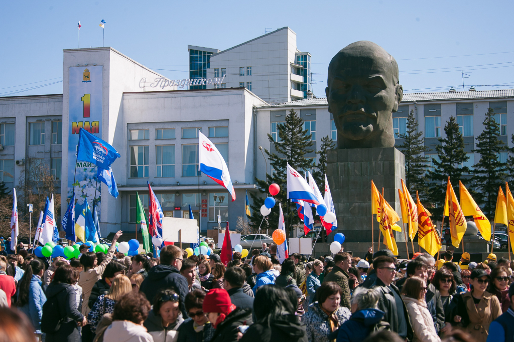 Несколько тысяч человек собрались на праздничный первомайский митинг на площади Советов. Над главной площадью Улан-Удэ развевались флаги «Единой России», ЛДПР, «Справедливой России» (КПРФ по традиции проводит 1 мая свой отдельный митинг; в этом году в то же время в парке «Юбилейный»), ОНФ, профсоюзных организаций и крупных предприятий.
