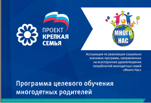 Обучение проводится в рамках реализации программы целевого обучения многодетных родителей «Профессия - мама. Семейный детский сад», разработанного с использованием гранта фонда президентских грантов.