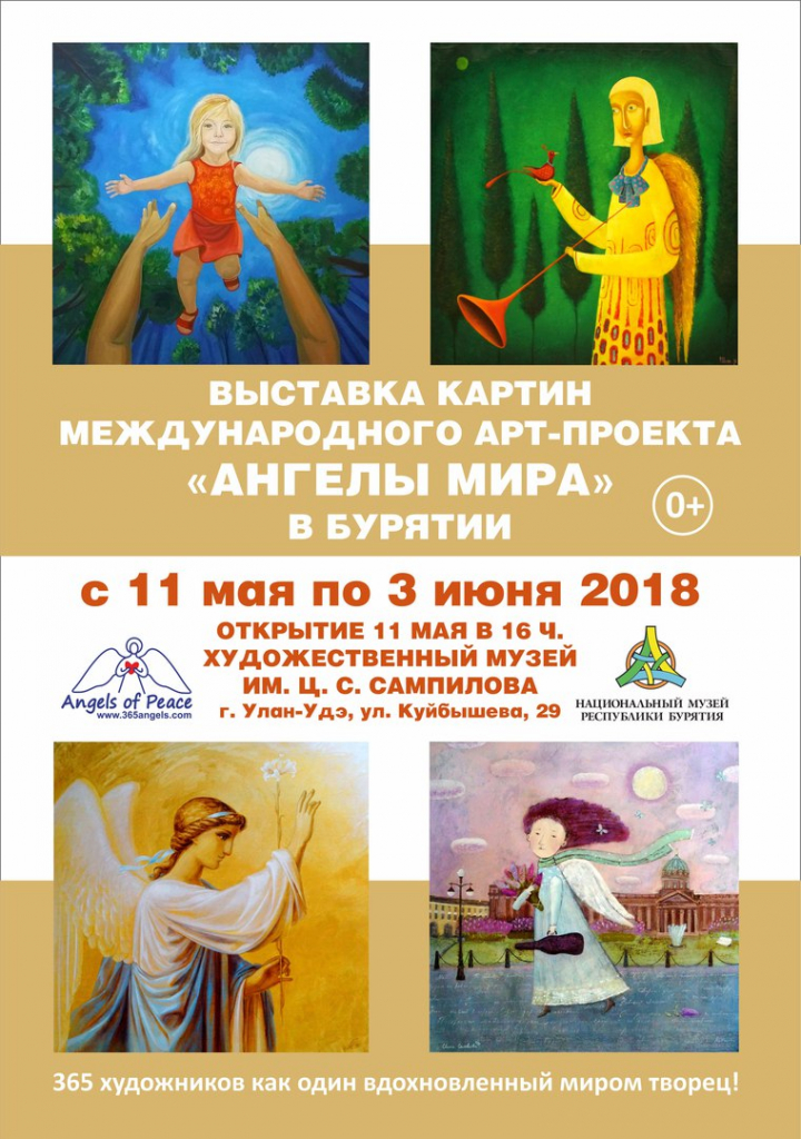 78 работ художников из России, США, Канады, Великобритании, Хорватии, Сербской Республики, Белоруссии, Узбекистана, Болгарии, Казахстана, Украины, Италии на тему «Ангел-хранитель» увидят посетители выставки в Улан-Удэ. На открытии зрители смогут пообщаться с PR-директором проекта Олегом Ровда, поучаствуют в написании общей картины «Ангел Улан-Удэ», смогут купить сувенирную продукцию с понравившимися картинами. Также они узнают, какие мысли и чувства закладывали художники в свои работы.