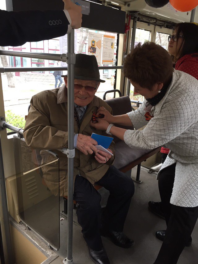 7 мая учащиеся и учителя школы №20 провели в трамвае акцию, посвящённую Великой Победе.