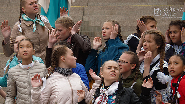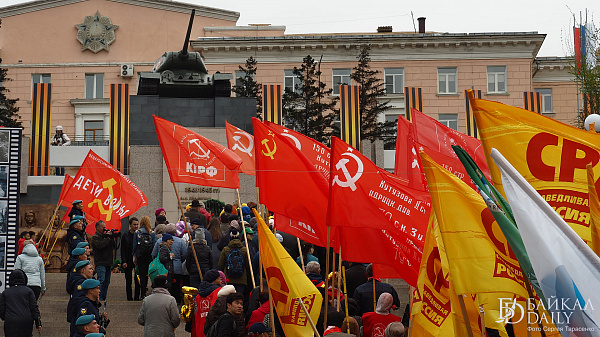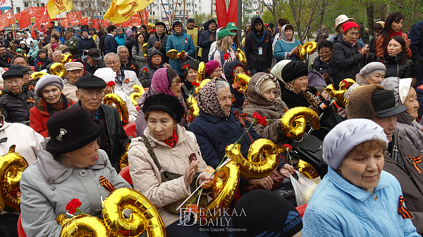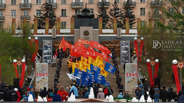 Сегодня в Улан-Удэ прошёл торжественный митинг, посвящённый 73-ей годовщине Великой Победы. Десятки горожан, несмотря на холодную погоду, шествовали с флагами к Мемориалу Победы, где их ожидала концертная программа.