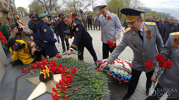 Затем к подножию Мемориала понесли десятки венков - от правительства Бурятии, администрации города, УФСБ, МВД, УФСИН, налоговой службы, общественных организаций, партий и пр. С красными гвоздиками к Вечному огню также поднялись официальные лица республики и сами ветераны, которых поддерживали волонтёры и родственники.