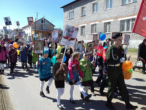 В этот день по центральной улице посёлка прошёл «Бессмертный полк». Более 50 жителей встали в ряды полка с портретами отцов, дедов и прадедов.