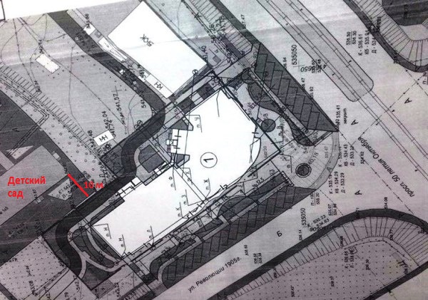 Более того, рядом с детсадовским забором строительная компания запланировала двухуровневую парковку (подземную и надземную) на 200-300 мест. Согласно ответу прокуратуры Железнодорожного района на запрос мамы одной из воспитанниц детского сада, паркинг будет находиться на разрешенном расстоянии до границ земельного участка согласно нормативам.