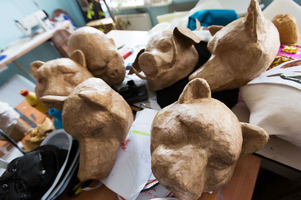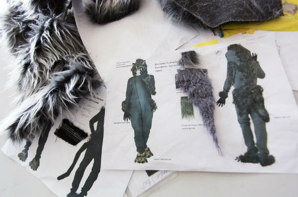 Подготовка к спектаклю заняла у цехов Русского драмтеатра практически 1,5 месяца. Перед пошивочным цехом художник-постановщик Кристина Войцеховская поставила задачу сшить костюмы не только для героев-людей, но и для персонажей-животных. При этом одно животное может иметь сразу несколько костюмов. Например, змея представлена в трёх экземплярах: сам костюм змеи, змея, поедающая мышей, и змея на шее у чиновника. Бутафорский цех создал маски животных – бумажные головы из крафтовой бумаги, полностью повторяющие контуры зверей. Кроме того, впервые в декорациях используется рекламный пластик.