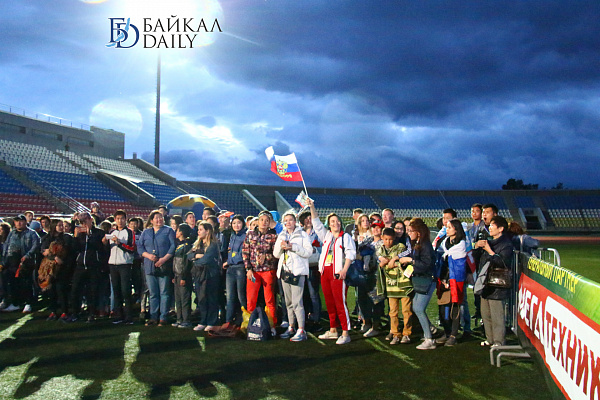 Вечером 25 июня улан-удэнские болельщики в прямом эфире следили за матчем Россия - Уругвай на Центральном стадионе Бурятии. Трансляция шла на большом экране. Пропуск на стадион давал «паспорт болельщика», который можно было оформить как заранее, так и получить на месте.