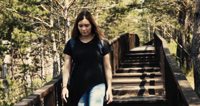В видео девушка прогуливается по специальной пешеходной дорожке, фотографирует цветы, наблюдает за птицами, белками. Фоном к красочному видео служит приятная умиротворяющая музыка.