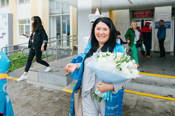 Сегодня ранним утренним рейсом из Москвы прилетела финалистка шестого сезона шоу телеканала ТНТ «Битва экстрасенсов» шаманка Кажетта. В аэропорту «Байкал» ясновидящую встретили бурятскими песнями девушка в национальном костюме и организатор приезда, бурятский певец Чингис Ли.