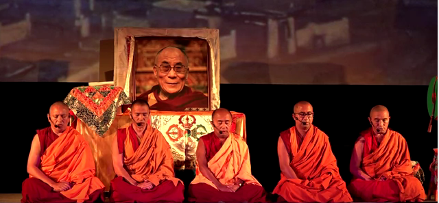 Специальными гостями вечера стали монахи из легендарного монастыря Ташилхунпо, которые исполнили фрагменты древних ритуальных танцев цам, продемонстрировали игру на храмовых музыкальных инструментах и горловое пение.