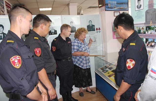 Мероприятие началось с минуты молчания. После работник УВО Галина Прыдымайло рассказала стажёрам и молодым сотрудникам управления вневедомственной охраны о поступке Владимира Гомбоева. В музее посвящена выставочная витрина младшему сержанту милиции.