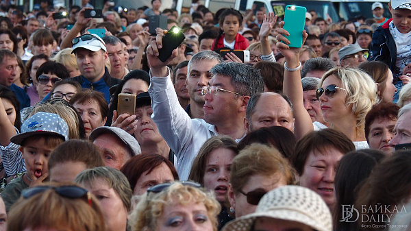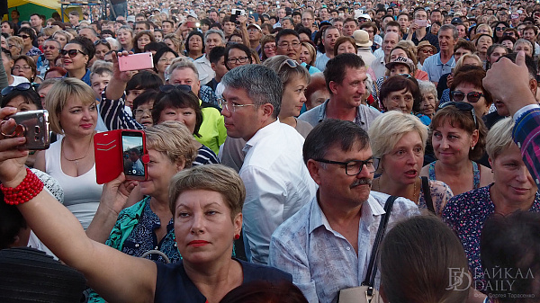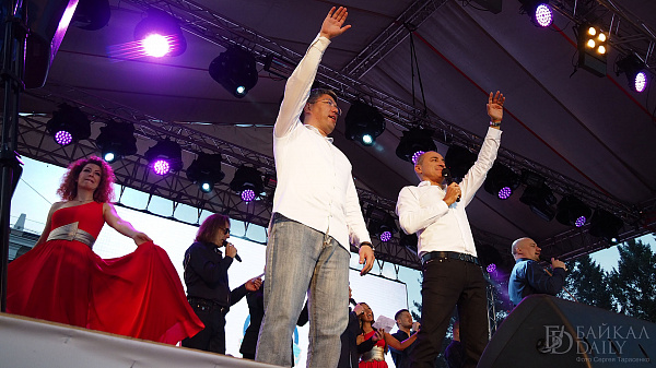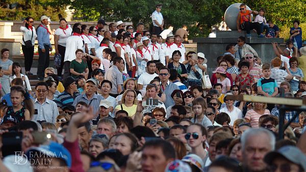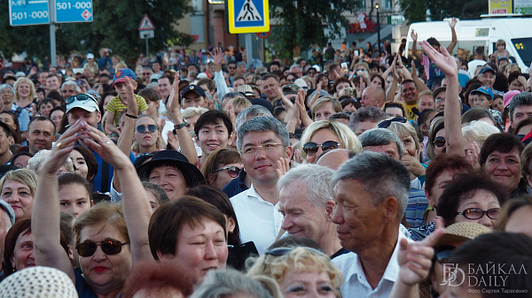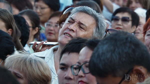 Алексей Цыденов тоже присоединился к мероприятию, наблюдая за концертом из толпы зрителей.Музыканты специально выучили слова гимна Бурятии, который коллектив исполнил вместе с главой республики и всеми жителями, собравшимися на площади. Толпа в один голос пела каждое слово.