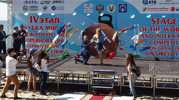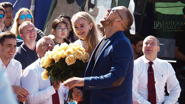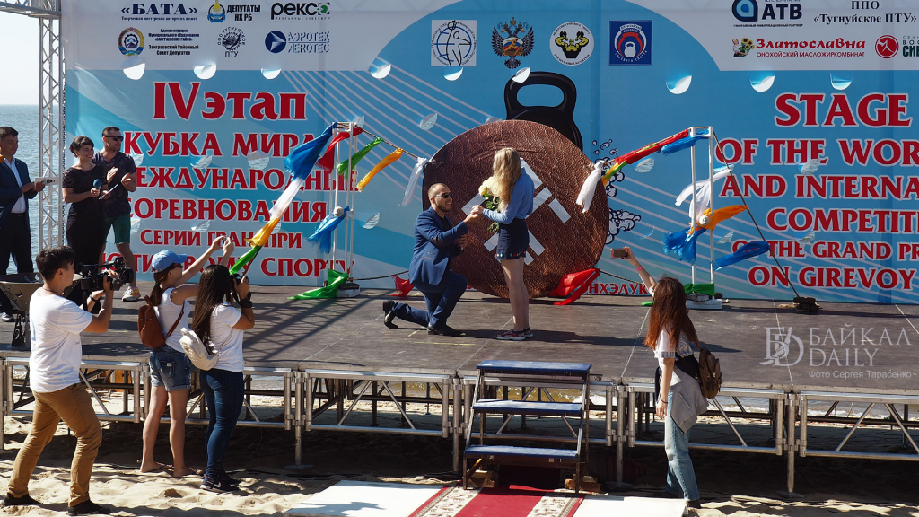 В завершении торжественной части на сцену вышел молодой человек с букетом в руках. Он сделал предложение своей девушке и она сказала «да». Влюблённым оказался Денис Кудасов, мастер спорта по гиревому спорту из Заиграевского района. Его невестой стала Анастасия Обедина.