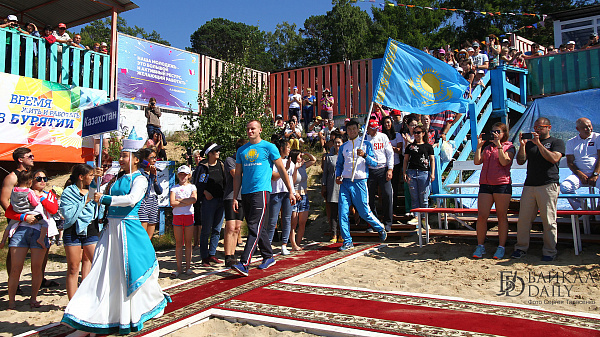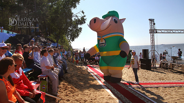 Соревнования начались с приветствия участников. На сцене выступили гиревики с показательным номером, а по красной ковровой дорожке прошёл надувной кабан.