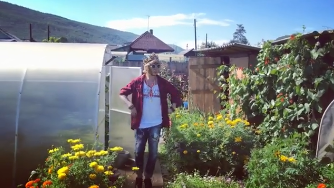 На отдыхе звезда шоу-бизнеса хоть и не снимал своей короны с камнями, но баловал себя домашней деревенской едой и дарами с огорода. Сергей Зверев прямо с куста поел горох, также прошёлся по приусадебному участку и заглянул в теплицу. А за столом его потчевали парным молоком, отварным картофелем, мясом, омулем и овощами.