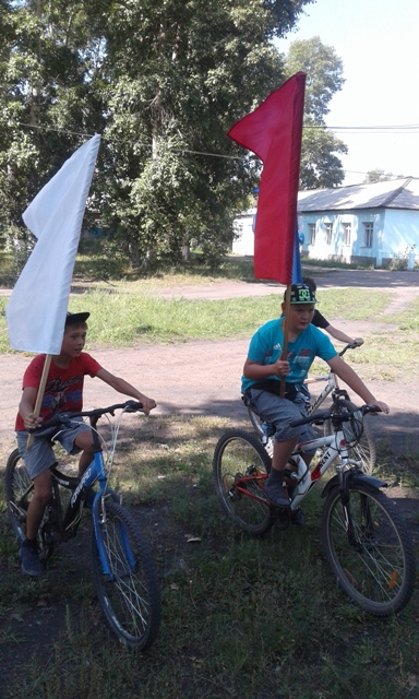 Все участники собрались на площади перед домом культуры с флагами. Проехали вокруг посёлка, сделали остановку под гимн России на роллердроме, расположенном около библиотеки.