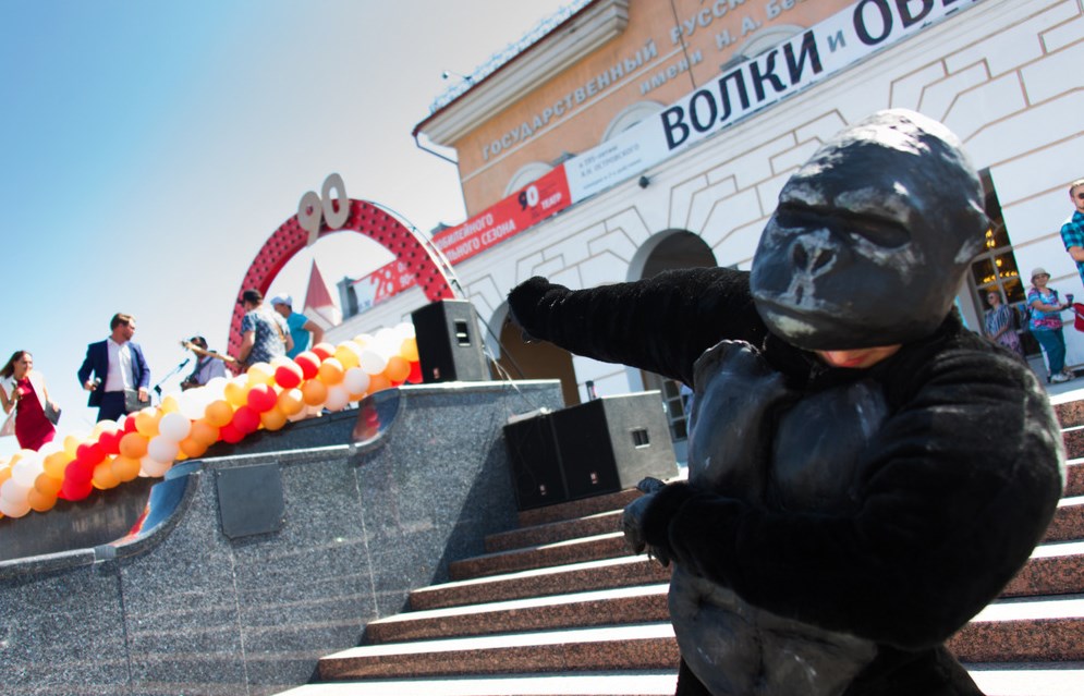 Торжественное открытие театральных касс Русский драмтеатр провёл в третий раз. В этом году в честь предстоящего юбилейного сезона театр Бестужева празднично украсил театральную площадь: фонтан был наполнен разноцветными воздушными шариками. А перед ним «красовалась» инсталляция из числа 90, символизирующая юбилей, который в этом году отмечает театральный коллектив.