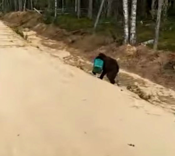 В конце прошлой неделе в Сети появилось видео, на котором двое мужчин пытались освободить медведя, голова которого застряла в канистре.