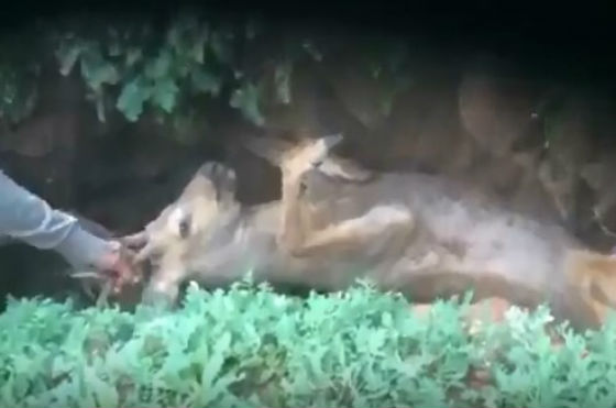 Косуля оказалась в ловушке, упав в расщелину