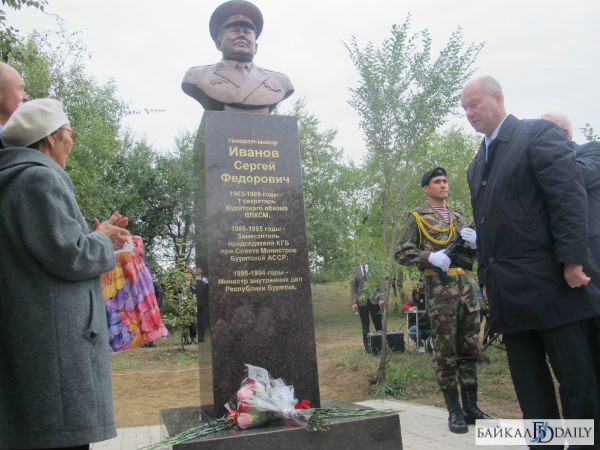 13 сентября состоялось торжественное открытие памятника бывшему заместителю председателя КГБ республики, экс-министру внутренних дел по Бурятии, генерал-майору Сергею Иванову. Бронзовый бюст установлен в сквере пограничников на пересечении улиц Николая Петрова и Октябрьская в Улан-Удэ. В открытии памятника приняли участие мэр Улан-Удэ Александр Голков, зампред правительства Бурятии по вопросам безопасности Пётр Мордовской, сотрудники полиции, военные, а также родные и близкие Сергея Иванова.
