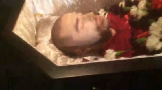Сам Дмитрий вскоре выложил на своей страничке скриншот церемонии: на нём он смотрит прямо в объектив камеры из гроба.