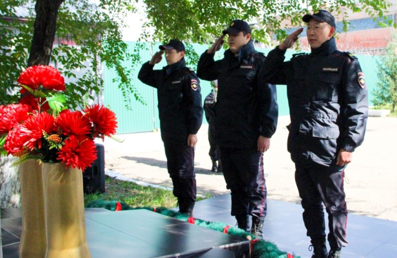 Почтили светлую память сотрудников, погибших при выполнении служебного долга минутой молчания и возложением цветов к мемориалу.
