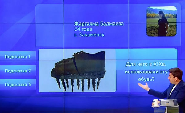 Ведущий Алексей Вершинин перед вопросом рассказал отметил, что с бурятского языка имя Жаргалма переводится как счастье, а также поведал небольшую историю о девушке.