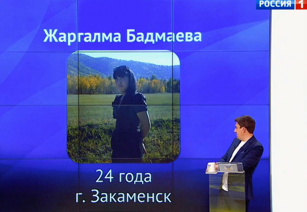 24-летняя жительница Закаменска Жаргалма Бадмаева задала участникам телешоу «Пятеро на одного» фото-вопрос и выиграла 20 тысяч рублей. Выпуск с её участием вышел в субботу, 29 сентября, на телеканале «Россия-1».