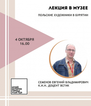 4 октября в 16:00 в музее истории Улан-Удэ пройдёт лекция. Темой мероприятия станут «Польские художники в Бурятии». Вход на встречу свободный.