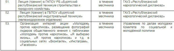 С 5 октября по 9 ноября в Улан-Удэ пройдёт месячник профилактики наркомании. Он состоится в целях снижения уровня преступности среди подростков и молодёжи Улан-Удэ, связанной с употреблением наркотических, токсикоманических веществ и алкоголя.
