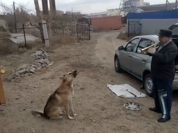 Сегодня утром в паблике «Аноним 03» появилось трогательное видео, где бродящий пёс по кличке Филя аккомпанирует трубачу. По словам автора видео, бродячую собаку приютили местные автомобилисты пару месяцев назад. Соорудили для него будку и поставили прививку. А пару дней назад в бродяге обнаружился талант
