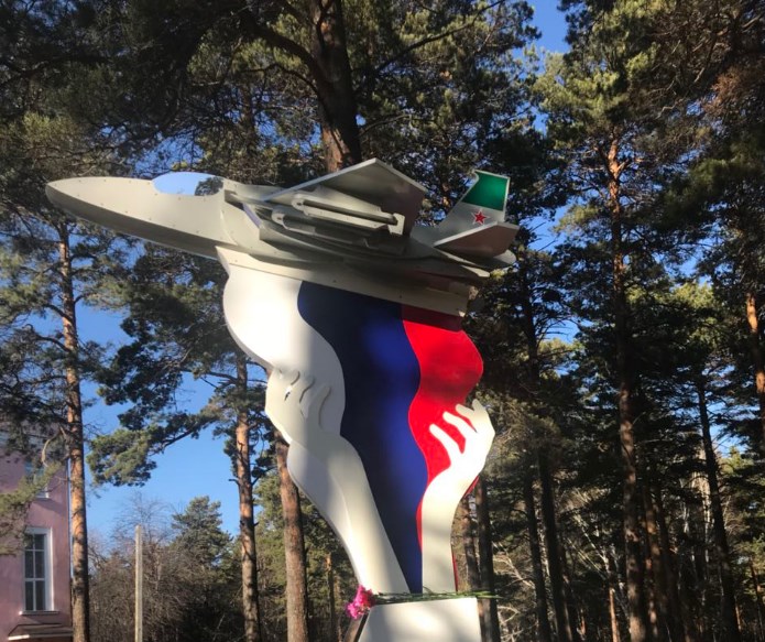 Поэтому право открыть памятник Герою России было представлено студентам горнотехнического колледжа. Монумент представляет собой взмывающий в небо самолёт со взлётной полосы. Идея композиции принадлежит мэру города Вадиму Семёнову.